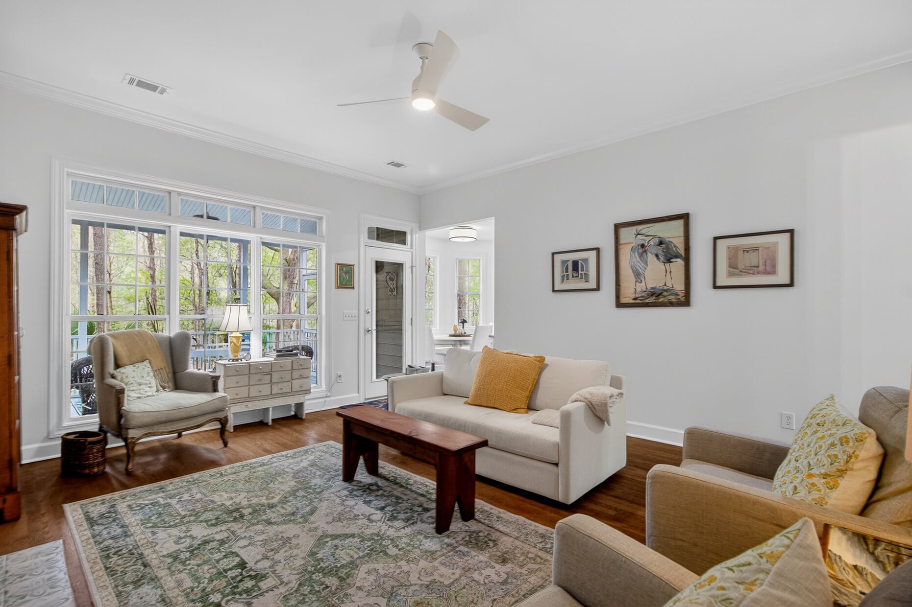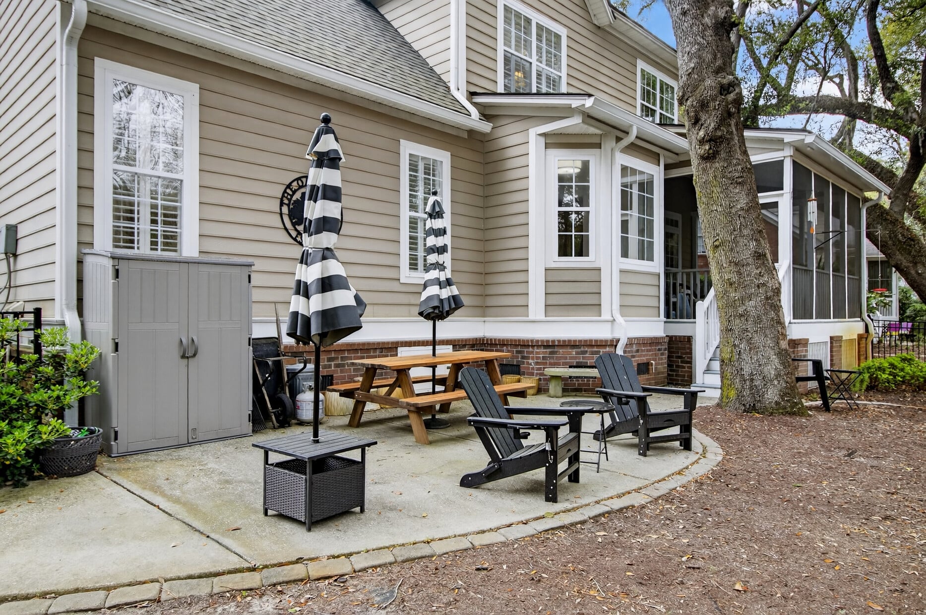 Outside, the wooded backdrop provides natural privacy and a tranquil setting that feels worlds away while remaining minutes from everything Hamlin Plantation has to offer — including resort-style amenities, walking trails, pools, tennis courts, and more.