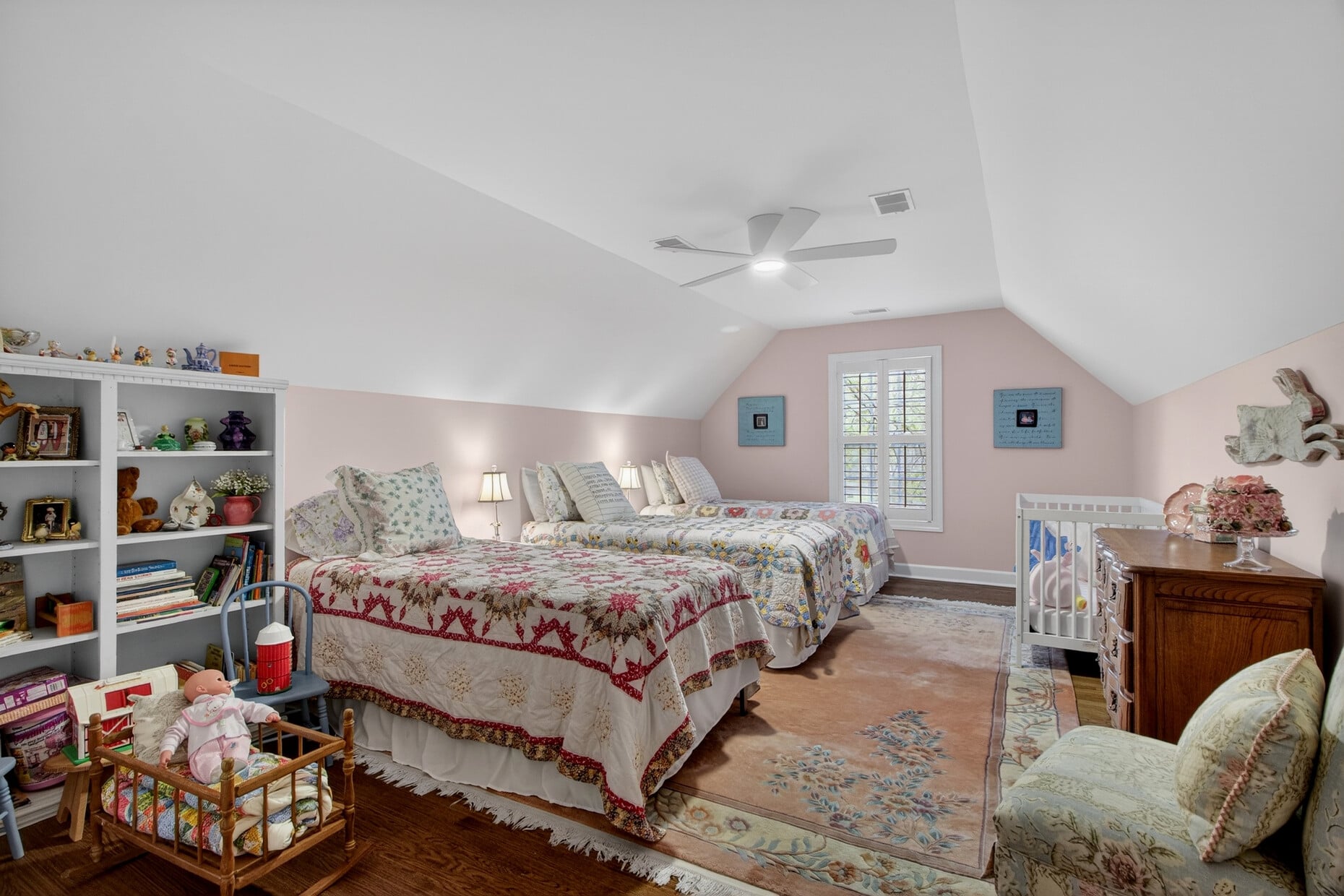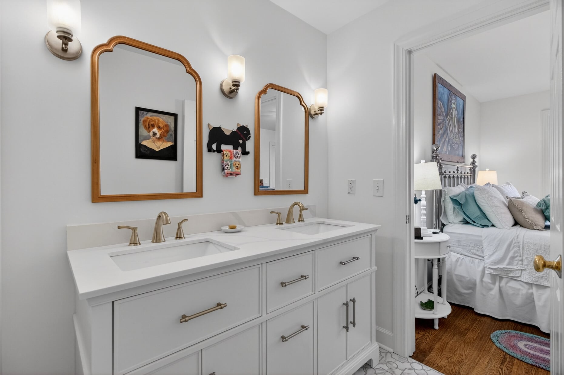 Upstairs, newly installed hardwood floors lead to three additional bedrooms, a versatile bonus room that can serve as a fifth bedroom, and two fully remodeled bathrooms — one of which offers dual access from both a bedroom and the hall for added flexibility.