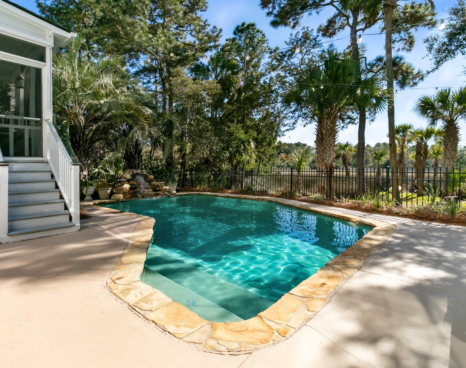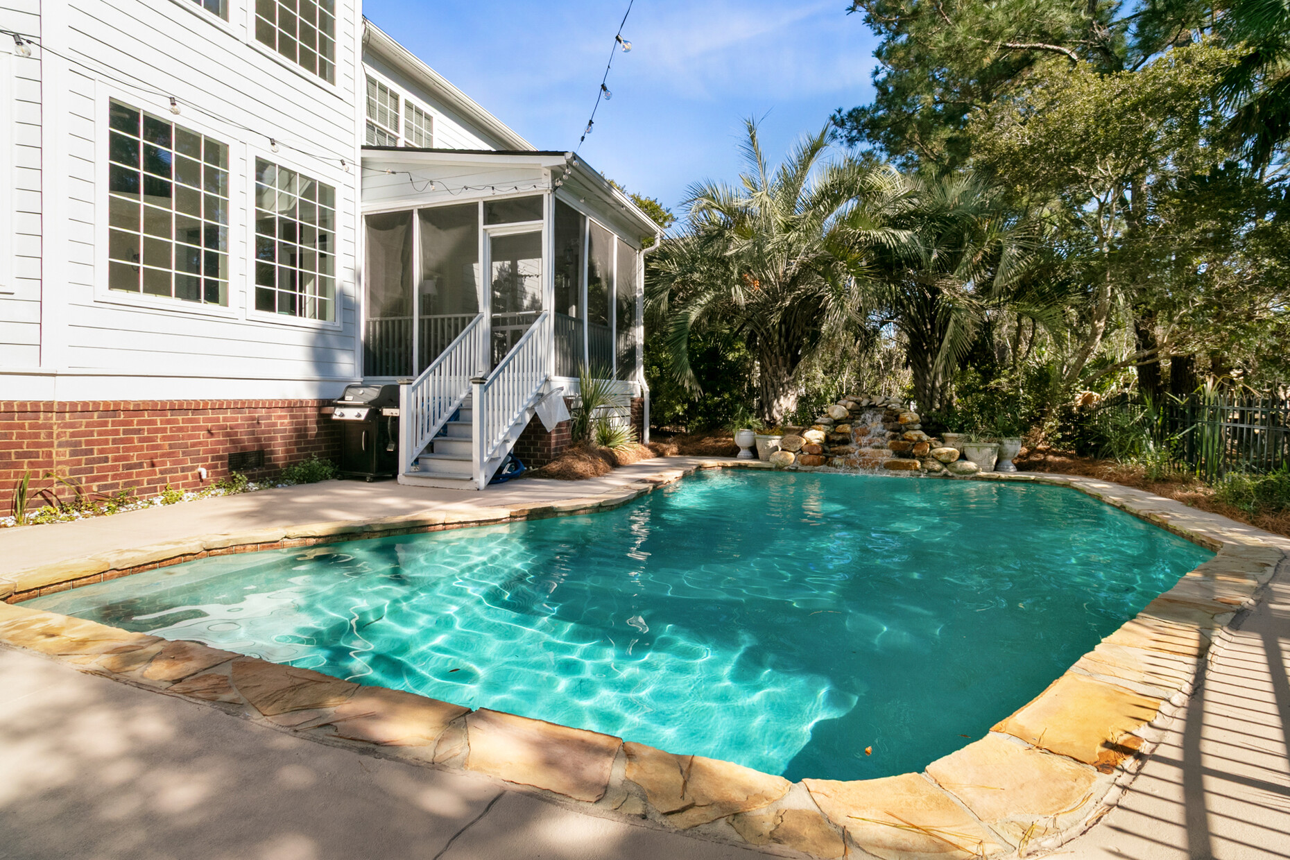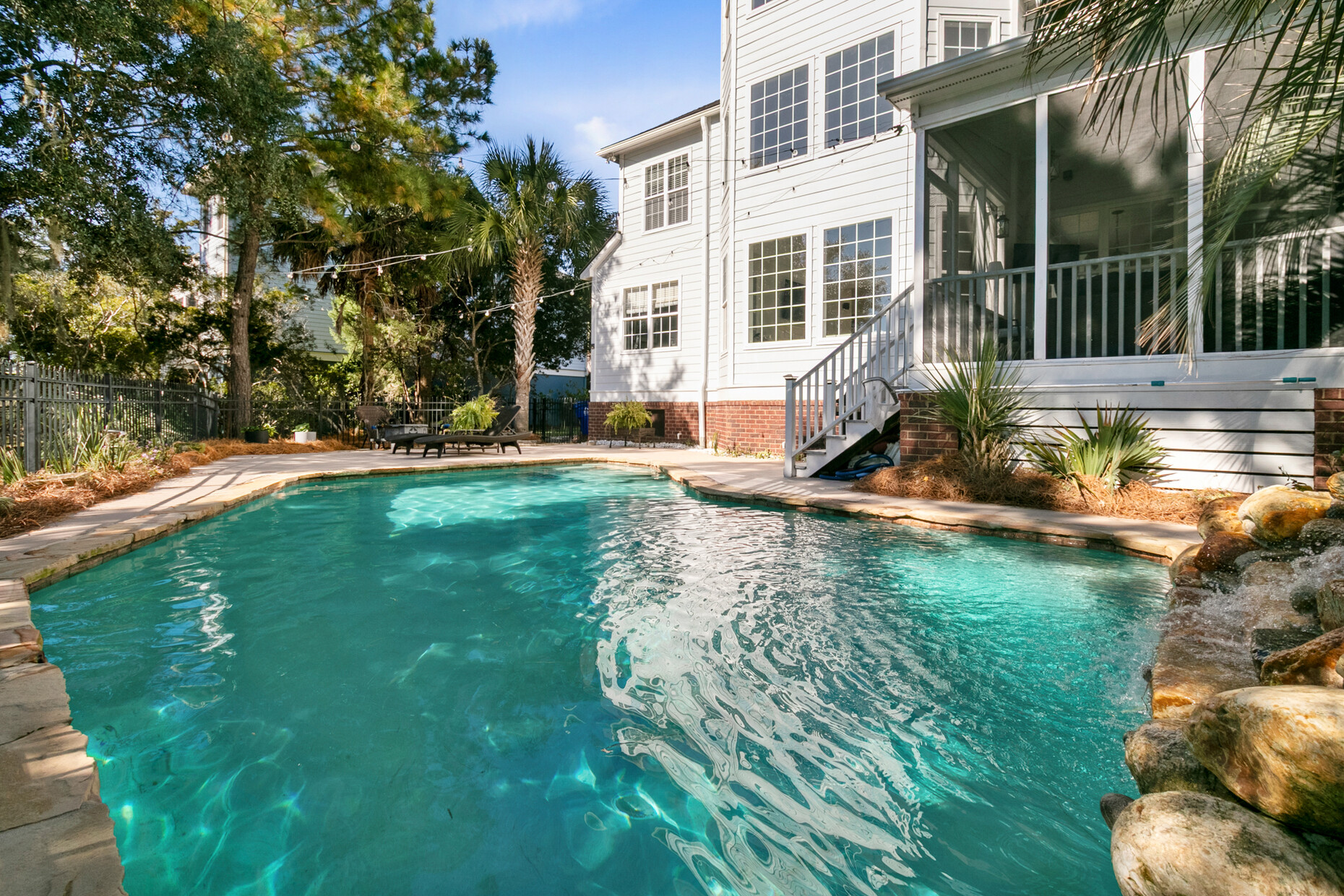 Outdoor living is equally well designed. The gunite pool is currently chlorinated but can be converted to saltwater if desired. The driveway includes a newly added parking pad, allowing for up to four vehicles, and the expanded 2.5-car garage comfortably fits a full-size SUV and includes a dedicated outlet for a refrigerator. A screened porch—one of the sellers’ favorite spaces—features vinyl panels that can be enclosed during cooler months, creating a warm, peaceful retreat year-round.
