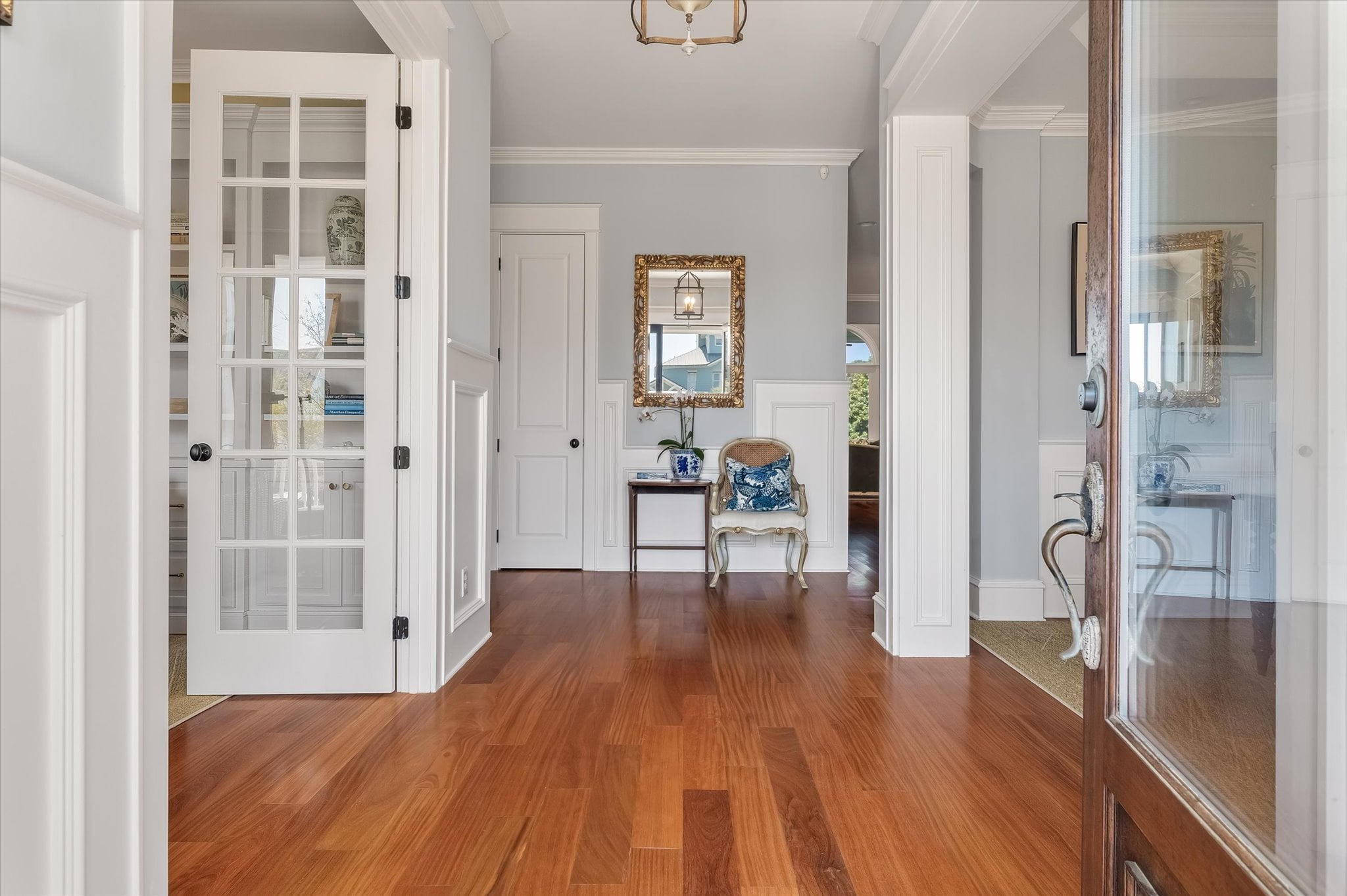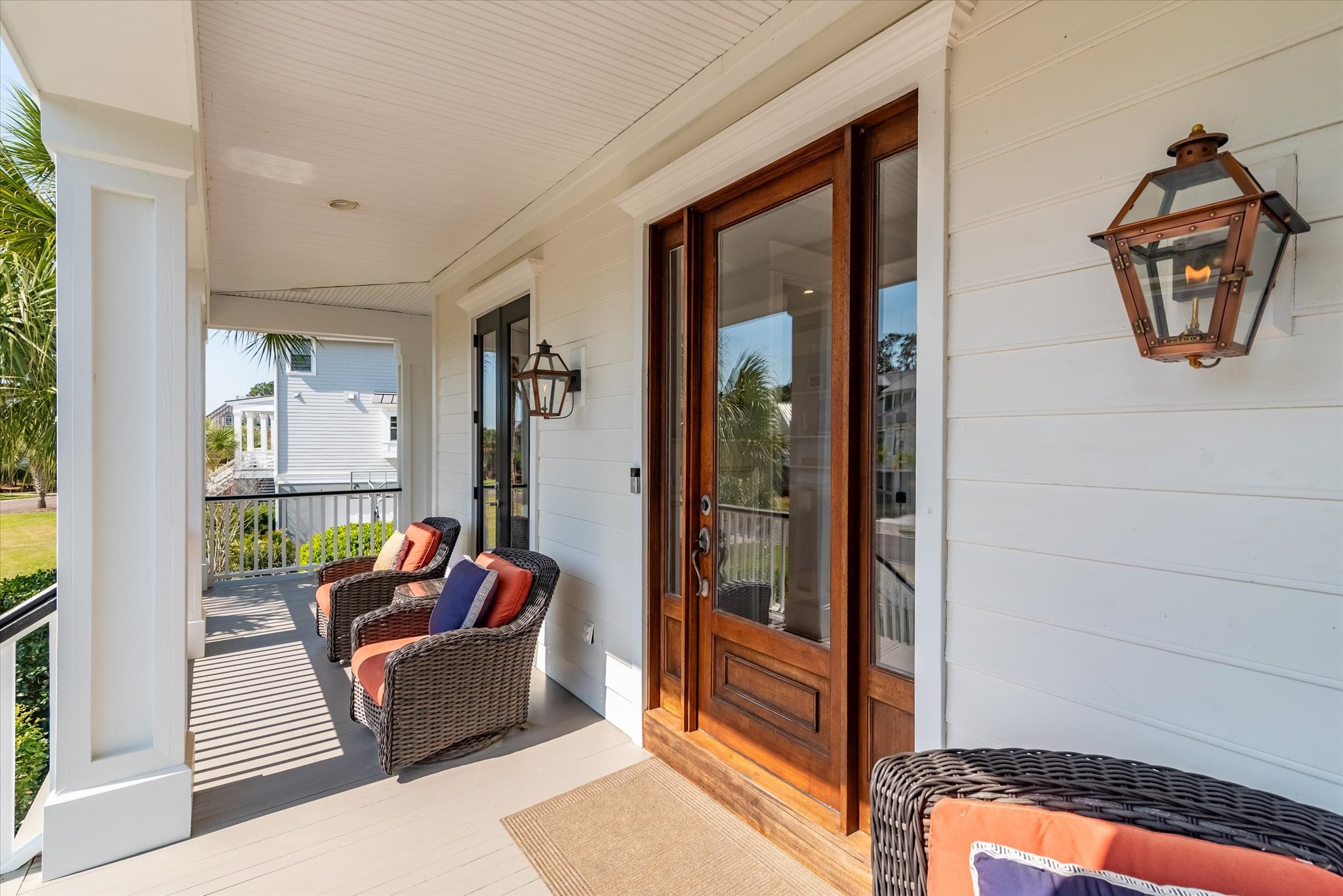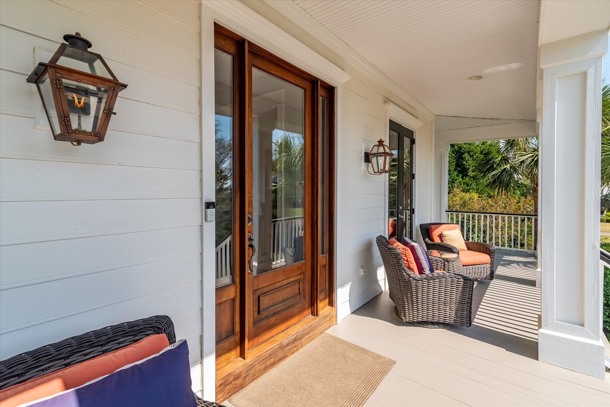 From the moment you arrive at 4970 Sound View Drive, the architecture makes an impression. Double front porches framed by five sets of French doors and a mahogany front door establish the character of this custom home — one that balances refined detail with a genuinely livable ease throughout.