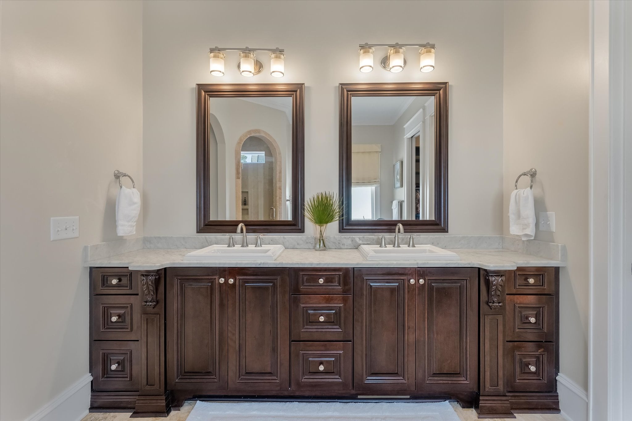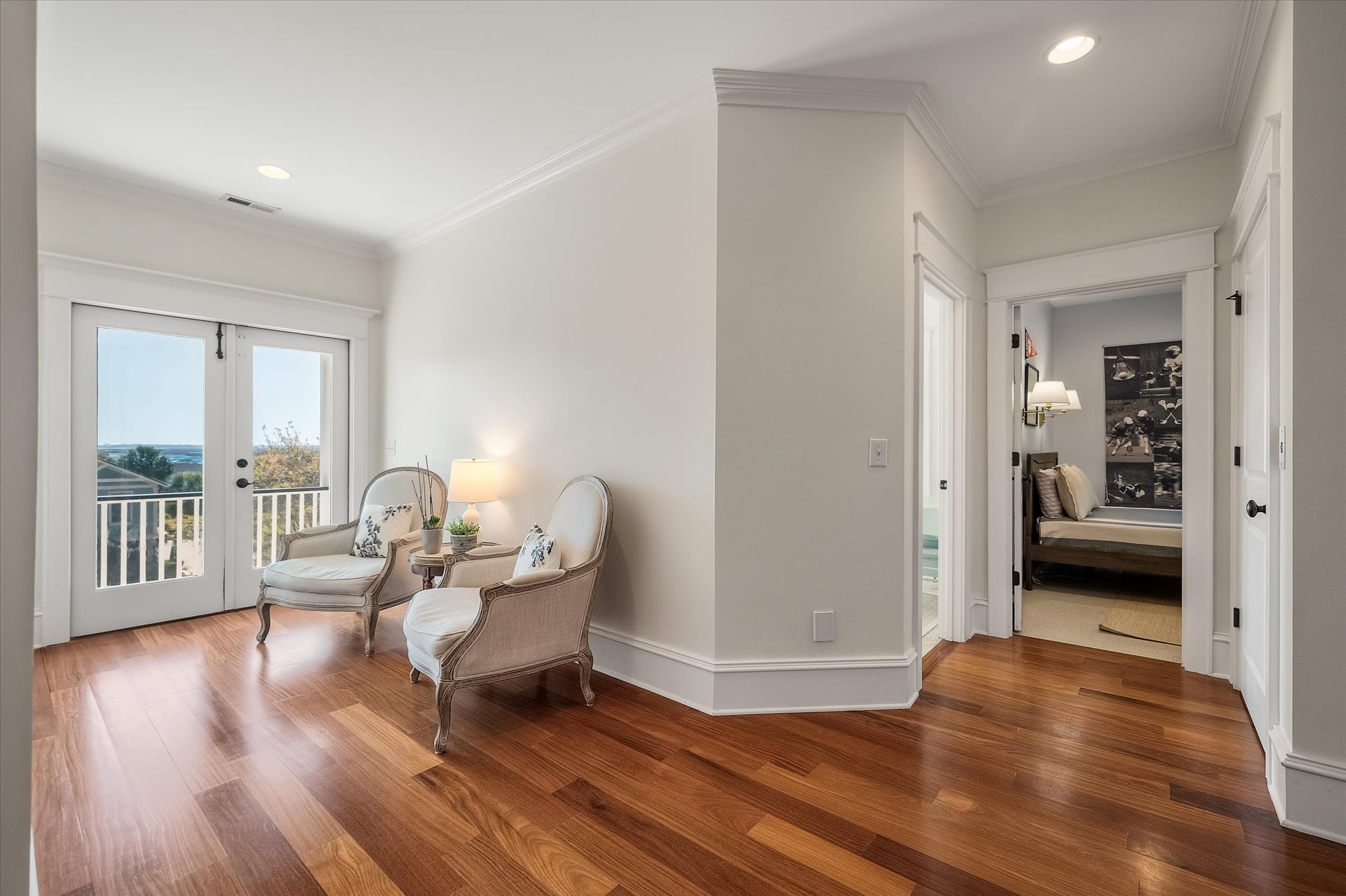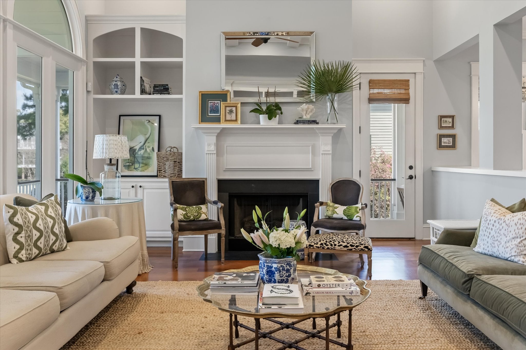 From the moment you arrive at 4970 Sound View Drive, the architecture makes an impression. Double front porches framed by five sets of French doors and a mahogany front door establish the character of this custom home — one that balances refined detail with a genuinely livable ease throughout.