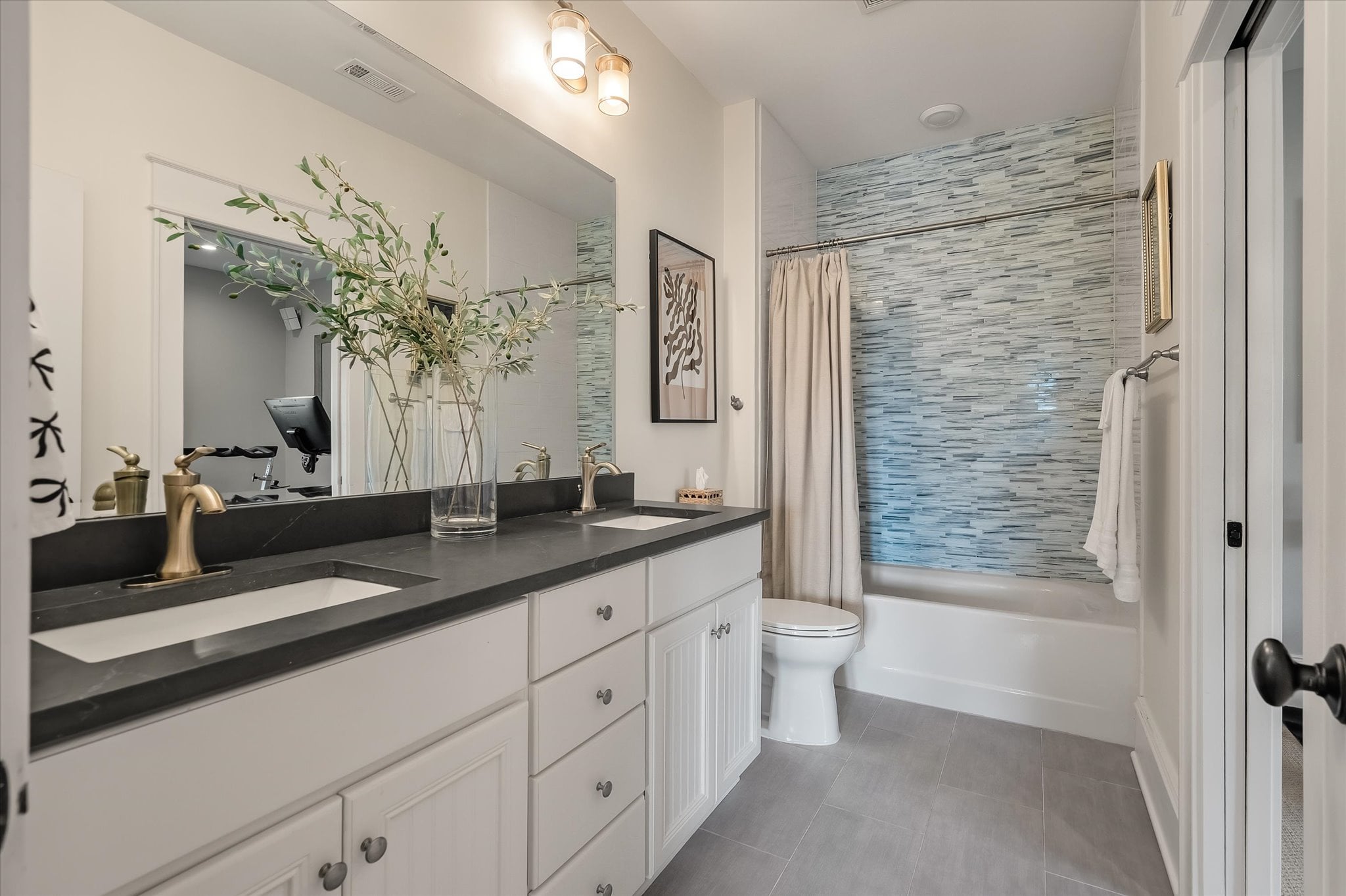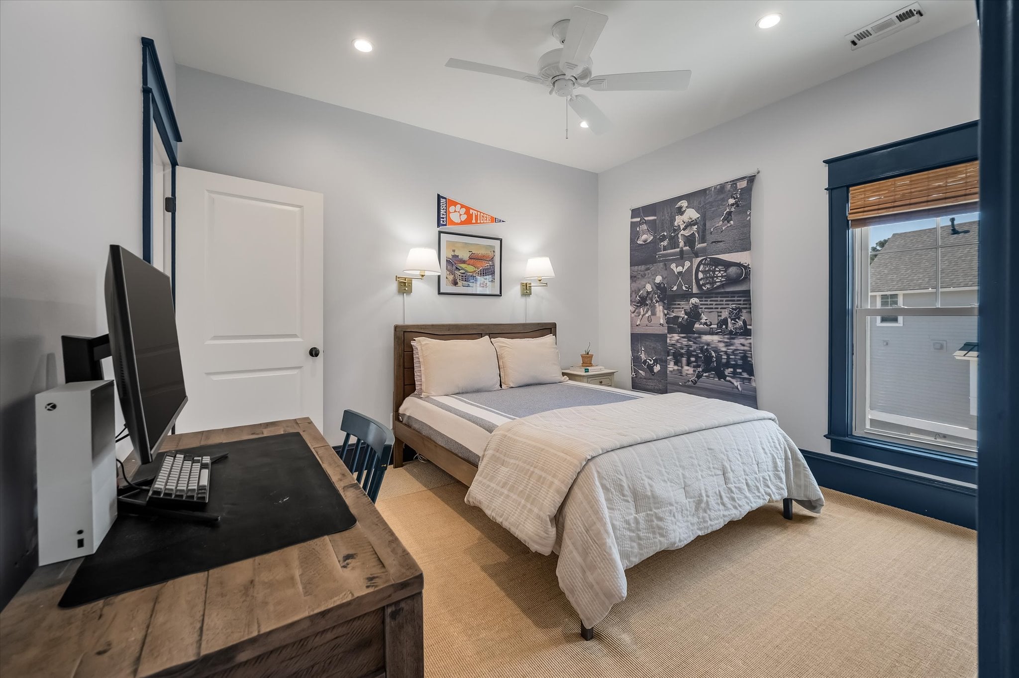 Recent updates include a new roof (2024), two new HVAC systems with blue light air handlers and ecobee thermostats (2022 and 2024), a new tankless water heater (2025), a new sprinkler pump (2025), newly designed landscaping, a redesigned staircase with custom wallpaper, custom wallpaper in the powder room, and new carpet in all bedrooms (2023).