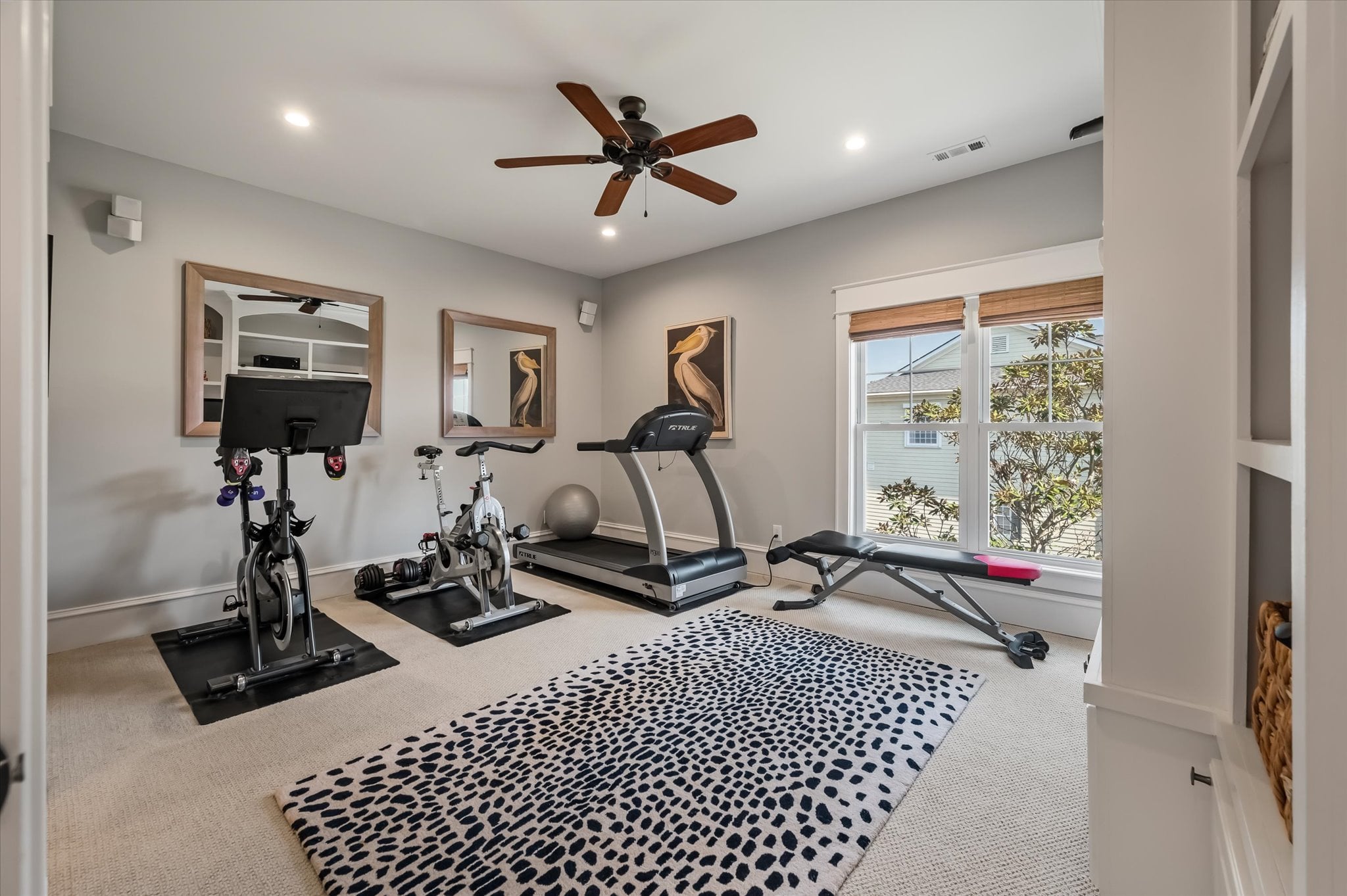 The main-level primary suite includes a private sitting room and remote-controlled shades. A three-stop elevator — beginning in the three-car garage — connects all levels with ease. Upstairs, a landing with porch access leads to four spacious bedrooms, two of which have their own porch access, along with updated bathrooms. An expansive storage area and a third-floor bonus space offer additional flexibility for a home office, media room, or whatever the next chapter calls for.